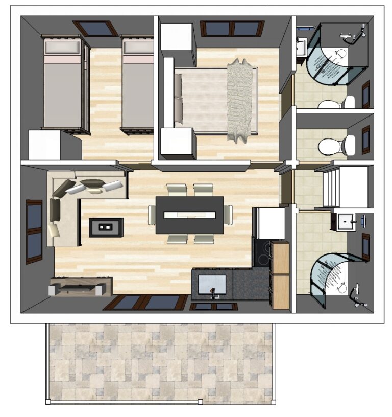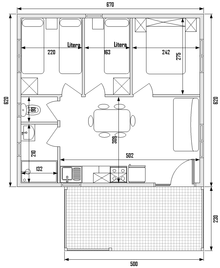 Con todo instalado, cocina, baño, terraza, lámparas, cortinas y mobiliario. Bungalows Llave en mano.